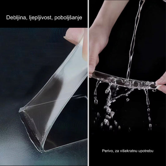 Dupla samolepljiva providna traka- 5m dužine, vodootporna, drži predmete do 1.5kg