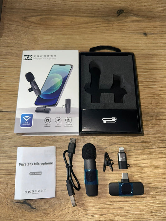 Bežični mikrofon za telefon- kristalo čist zvuk bez šuma, stabilno bežično snimanje bez kablova, do 8h snimanja bez punjenja, domet do 30m